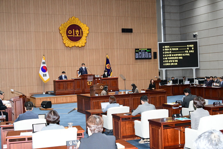 한편, 이날 본회의에서는 ▲명진 의원의 ‘도심융합특구 사업 관련 특별법 제정 촉구에 모두 함께 동참하자!’ 라는 주제로 5분 자유발언이 이뤄졌다.