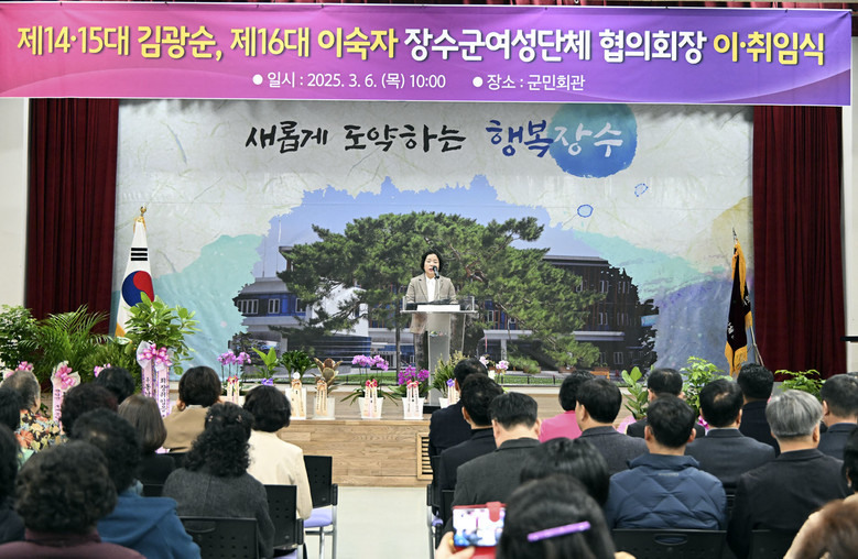 최훈식 군수는 “김광순 회장님의 헌신과 노고에 깊이 감사드리며 이숙자 신임 회장님의 취임을 축하드린다”며 “장수군도 양성이 평등하게 참여할 수 있는 지역 환경 조성을 위해 적극적으로 지원하겠다”고 전했다.