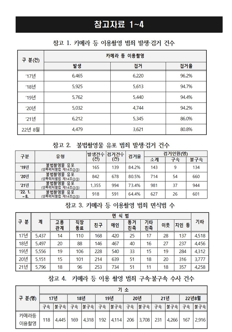 이성만 의원은 “인터넷에 한번 배포된 불법촬영물은 지속적으로 확산되기 때문에 쉽게 삭제하기 어렵다”며 “수사기법 고도화에 더 많은 역량을 투입해 검거율 제고에 노력해야”한다고 밝혔다.