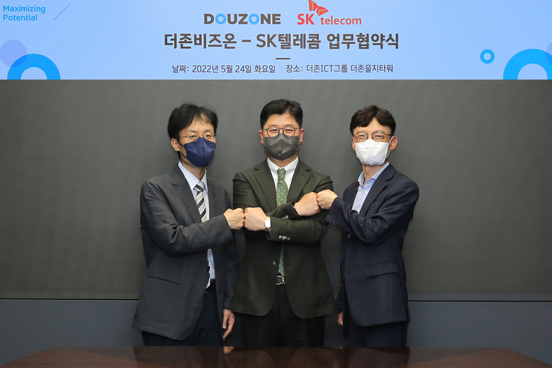 양사는 24일 서울 중구에 위치한 더존을지타워에서 화이트라벨링 협약을 체결했으며, 협약식에는 최낙훈 SKT 스마트팩토리CO담당, 조정민 SKB 커넥트인프라CO 담당, 지용구 더존비즈온 솔루션사업부문 대표 등이 참석했다.