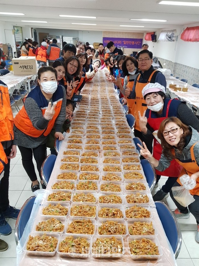 [대전=세계타임즈 이장성 기자] 6천명의 회원들이 활동하고 있는 SNS 봉사단체인 사랑의 사다리 밴드(리더 이정제)는 16일 오전9시~오후 1시 대전시 대덕구 오정동에 위치한 염광교회(담임목사 오상현) 식당에서 대전시 소외계층 230분께 사랑의 밑반찬을 직접 만들고 전달을 하면서 따뜻한 이웃사랑을 전했다.