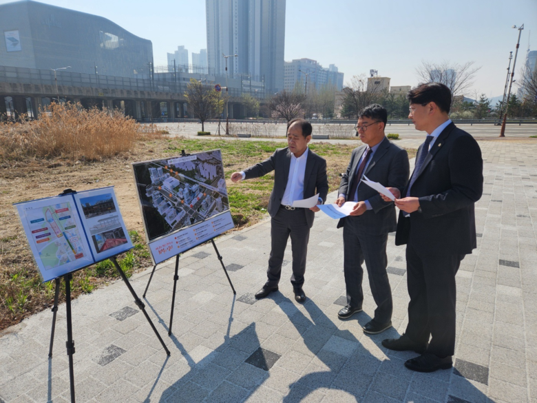 [천안시 세계타임즈=이현진 기자] 천안시의회(의장 김행금) 이종담시의원(불당1,2동), 구형서 충청남도의원(불당1.2동)이 제279회 천안시의회 임시회 시정질문 관련 요청으로 천안시 관계자와 함께 천안아산역 R&D집적지구 도보통로 조성사업 현장을 찾아 그동안 추진 상황과 향후 추진 계획에 대하여 설명을 들었다.