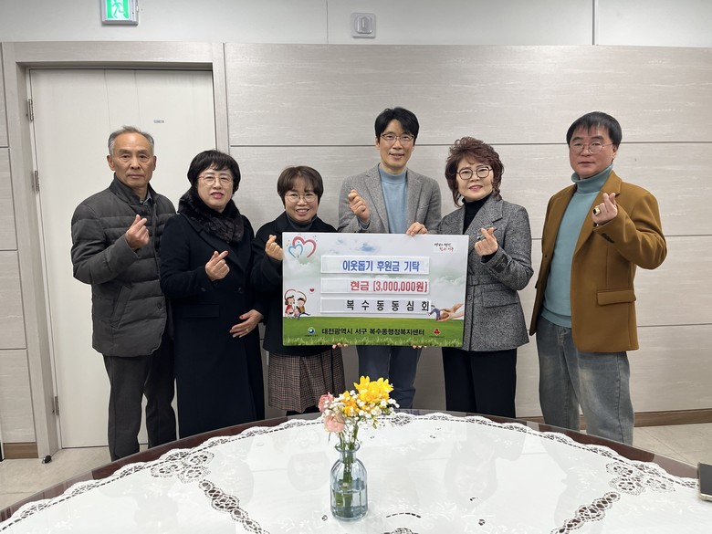[서구 세계타임즈=이채봉 기자] 대전 서구 복수동 행정복지센터는 5일 주민 모임 ‘동심회’로부터 지역 내 어려운 이웃을 돕기 위한 성금 300만 원을 전달받았다.