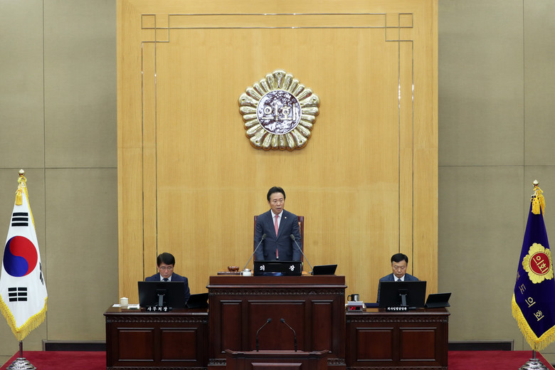 황영호 의장은 개회사에서 “2022년 7월 출범한 12대 의회는 전반기 2년 동안 ‘도민이 중심 신뢰받는 의회’를 구현하기 위해 집행부에 대한 견제 감시라는 의회 본연의 역할에 충실했다”며 “청주국제공항 민간 전용 활주로 신설, 충북지역 의과대학 정원 확대 등을 정부와 국회에 건의하는 등 지역 현안 해결에 앞장섰다”고 했다.