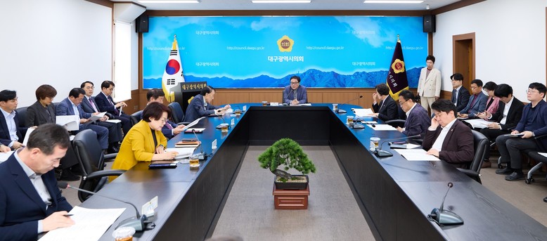 [대구 세계타임즈=한윤석 기자] 대구광역시의회(의장 이만규)는 4월 16일(화) 오전 11시 시의회 2층 회의실에서 의장단과 각 상임위원장이 모인 가운데 ‘확대의장단 회의’를 개최했다.