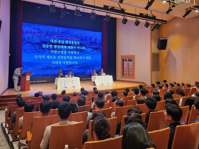 대전·충남 행정통합 민관협의체(위원장 이창기·정재근)는 8일 논산시 아트센터 소공연장, 서천군 기벌포 복합문화센터 대강당을 잇달아 방문해 주민 설명회를 개최했다.