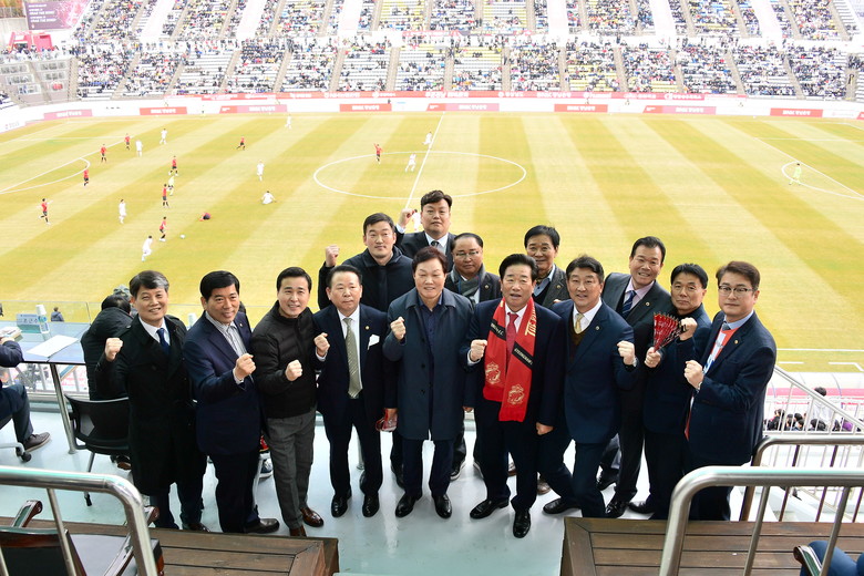 [경남 세계타임즈=최성룡 기자] 경상남도의회 문화복지위원회(위원장 김재웅, 이하 “위원회”) 소속 도의원들은 지난 3월 1일 창원축구센터에서 열린 경남FC 홈 개막전에 참석하여 새로운 시즌 경남FC의 힘찬 출발과 재도약을 응원했다.
