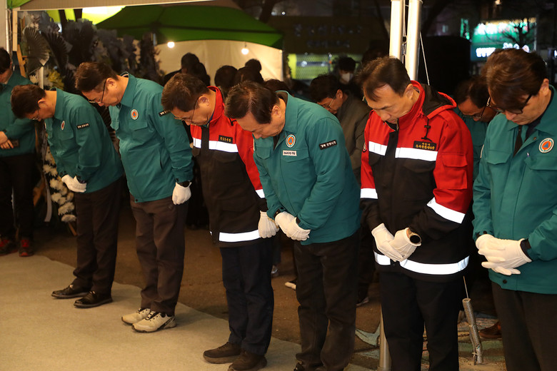 [안동시 세계타임즈=한윤석 기자] 권기창 안동시장과 안동시청 직원들이 3월 28일(금) 이번 대형산불로 희생된 분들을 추모하기 위해 마련된 ‘산불 재난 희생자 시민분향소’를 찾아 합동 분향을 진행했다.