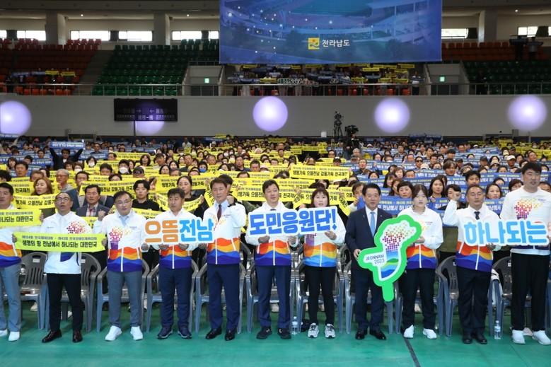 이날 행사는 최정훈‧조옥현 도의원을 비롯해 김영록 도지사, 도민‧학생‧체육단체 응원단 등 1,500여 명이 참석했으며 치어리딩 공연, 축사, 도민응원단의 결의문 낭독, 성공 기원 퍼포먼스 순으로 진행됐다.