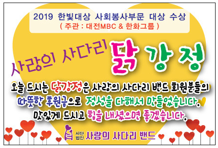 현재 9,200명으로 구성된 사랑의 사다리 밴드는 지방자치단체의 보조금 지원없이 회원들의 후원금으로 매주 2회 대전시 지역아동센터에 닭강정 봉사와 통닭 봉사로 대전시 5개구 지역아동센터에 따뜻한 사랑 나눔을 펼치고 있다.