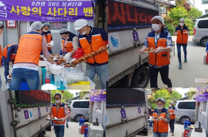 [세계타임즈 이장성 기자] 다양한 봉사를 꾸준히 실천하고 있는 SNS 대전시 봉사단체 사랑의 사다리 밴드(리더 이정제)는 15일 오후14시~오후16시, 계룡시 엄사면에 위치한 늘평안주야간보호센터(센터장 허연무)에서 바비큐 통닭 봉사로 사회적 효행을 실천하였다.