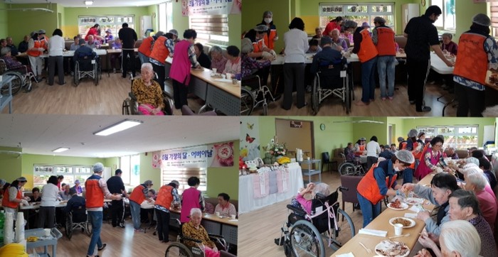 허연무 센터장은 “오늘 가정의 달을 맞이해서 요양원 어르신들의 생신상 행사에 사랑의 사다리 밴드에서 통닭을 지원해 주셔서 뜻 깊은 생신잔치가 되었다.“면서 감사함을 전했다.