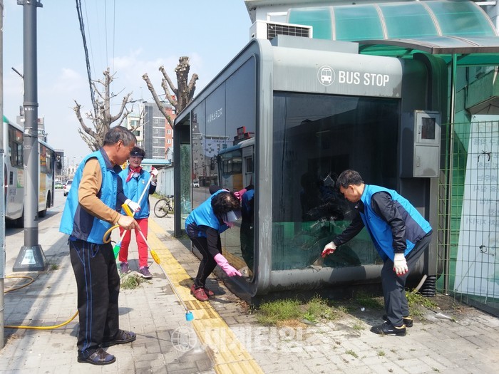 [충주=세계타임즈 이현진 기자] 충주시 봉방동 바르게살기위원회(위원장 정은택)가 시민들에게 깨끗하고 쾌적한 환경을 제공하기 위해 27일 버스승강장 대청소를 실시했다.