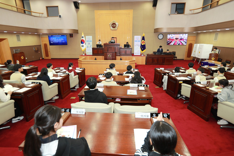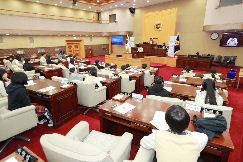 청소년 의회교실은 학생들이 1일 도의원이 되어 본회의장에서 의장 선거, 안건처리, 2분 자유발언 등 의정활동을 체험하는 프로그램이다.
