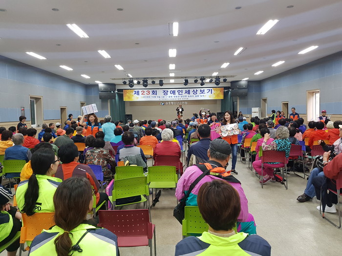제23회 장애인 세상보기 행사는 충북 영동군 양산면 송호리 유원지에서 버스6대가 출발하여 점심과 노래자랑을 통해서 서구지체장애인들의 화합을 다지는 뜻 깊은 행사였다.