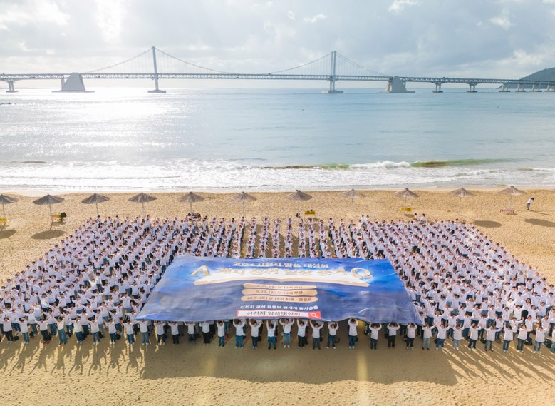 ▲28일 오전 신천지예수교 증거장막성전(신천지예수교회) 부산야고보지파 부산교회 성도 1000여명이 ‘2024 신천지 말씀대성회 계시 성취 실상 증거’ 홍보를 위해 광안리 해변 일대에서 대형 현수막과 함께 환호하며 홍보하고 있다. [사진 제공 = 신천지 부산교회]