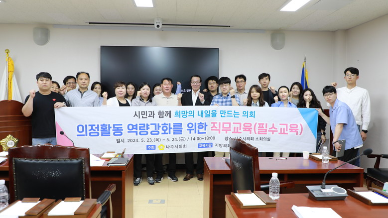 나주시의회는 의정활동의 수준 향상을 위하여 관련된 전문적인 지식과 능력을 개발할 수 있도록 다양한 분야의 교육을 매년 진행하고 있다.