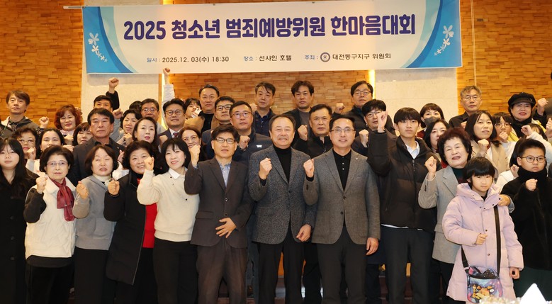 [동구 세계타임즈=이채봉 기자] 대전 동구(구청장 박희조)는 지난 3일 선샤인호텔 루비홀에서 ‘2025 청소년범죄예방위원 한마음대회’를 열고, 한 해 동안 지역 청소년 보호와 범죄예방을 위해 활동한 성과를 공유했다고 밝혔다.