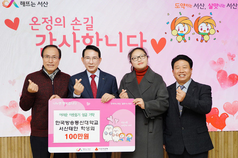 이완섭 서산시장은 “오늘 모아주신 온정이 연말 추워지는 날씨에도 지역사회를 따뜻하게 만들고 있다”라며 “이날 전달된 온정을 어려운 이웃에게 전달하는 데 최선을 다하곘다”랑고 말했다.