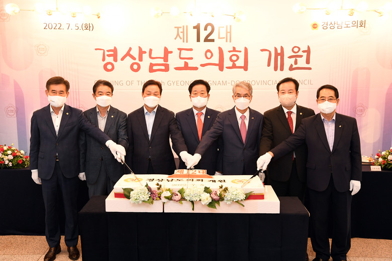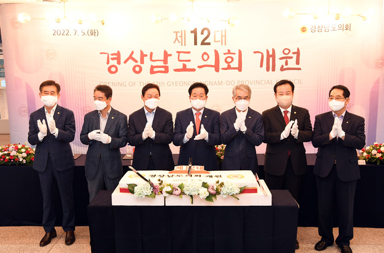 개원식을 마치고 1층 로비에서 김진부 의장을 비롯한 제12대 도의원과 박완수 도지사, 박종훈 교육감, 조우성 의정회장 등이 참석한 가운데 개원 축하연을 개최하였다.