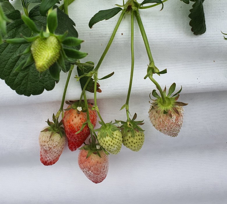 꽃곰팡이병은 꽃의 암술부터 감염이 시작되며, 꽃과 꽃받침이 흑변하고 기형과 발생으로 이어지는 병해다.