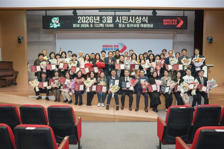 [오산시 세계타임즈=송민수 기자] 오산시(시장 이권재)는 지난 12일 오산시청 대회의실에서 2026년 3월 시민시상식을 개최했다고 밝혔다.