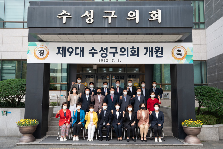 한편 수성구의회는 지난 7일 제249회 임시회 1차 본회의에서 의장에 전영태 의원, 부의장에 김경민 의원을 선출하고, 8일 2차 본회의에서 운영위원장에 김중군 의원, 행정자치위원장에 차현민 의원, 사회복지위원장에 남정호 의원, 도시보건위원장에 박충배 의원을 각각 선출하여 제9대 전반기 원구성을 마쳤다.