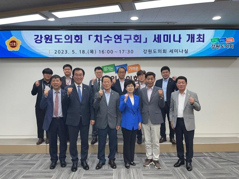 [강원도 세계타임즈=김민석 기자] 강원도의회 치수연구회(회장 윤길로) 위원들은 5월 18일(목) 제319회 임시회 회기 삼일째인 치수연구회 세미나를 강원도의회 세미나실에서 개최, “한강수계관리위원회를 설득할 수 있는 수질개선사업 등의 발굴 모색”에 대하여 세미나를 개최하였다.