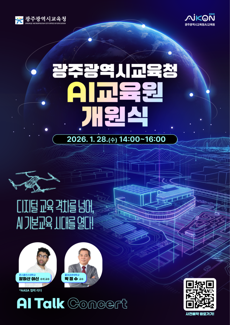 [광주 세계타임즈=손권일 기자] 광주시교육청AI교육원(이하 광주AI교육원)은 오는 28일 오후 2시 본원(북구 능안로 30번길 7) 대강당에서 개원식을 개최한다.