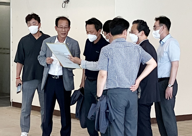 강대길 부의장은 현장에서 동구청 직원으로부터 현안 사항을 청취하고, 공공체육시설 확충을 위한 방안을 의논했다.