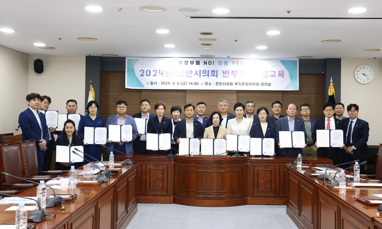 [천안시 세계타임즈=백택기 기자] 천안시의회(의장 김행금)가 6일 오후 천안시의회 대회의실에서 의원들과 의회사무국 직원들을 대상으로 2024년 반부패청렴 교육을 실시했다고 밝혔다.