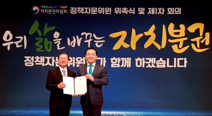 [광주=세계타임즈 손권일 기자] 송형일 광주광역시의원이 21일 오후 2시 정부 서울청사에서 대통령소속 자치분권위원회 정책자문위원으로 위촉됐다.