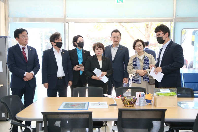 이날 건설교통위원들은 통합신공항건설본부 관계자로부터 사업 진행상황에 대해 보고받고 이전부지를 시찰했다. 이어 군위군의 현장소통상담실을 방문하여 운영현황을 점검했다.
