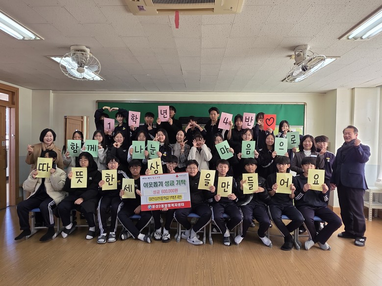 양동석 둔산2동장은 “학생들의 따뜻한 마음과 용기 있는 실천에 깊이 감사드린다”며 “소중한 나눔이 어려운 이웃에게 잘 전달될 수 있도록 최선을 다하겠다”고 밝혔다.