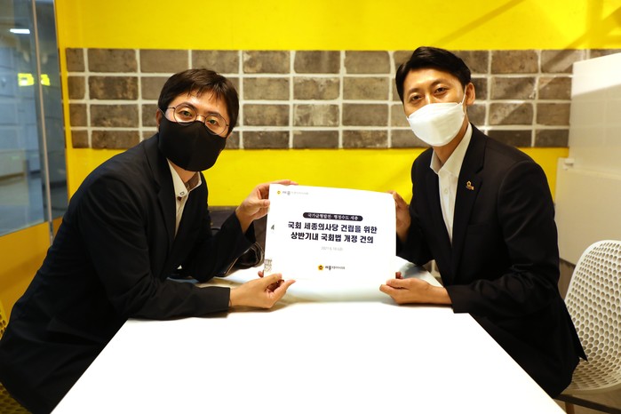 특히 이날 오후 이태환 의장은 1인 시위를 마친 후 이동학 더불어민주당 청년최고위원과 복기왕 국회의장 비서실장을 만나 국회 세종의사당 설치의 필요성과 당위성에 대한 세종시의 입장을 전달했다.