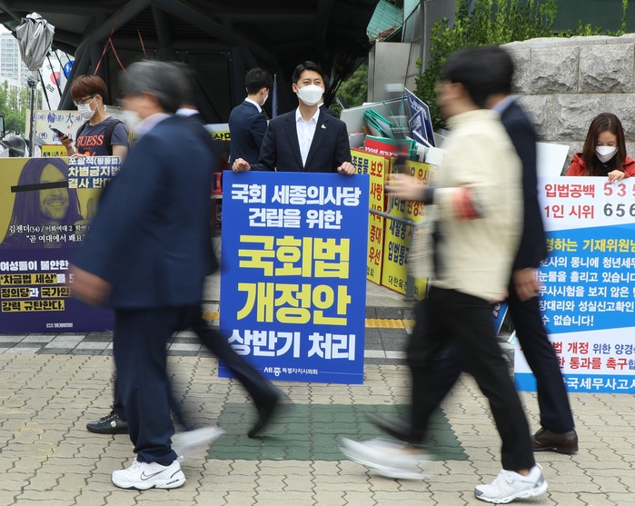[세종=세계타임즈 이채봉 기자] 세종특별자치시의회는 18일 ‘국회법 개정안 6월 본회의 처리 촉구’ 성명문을 발표한 데 이어 이태환 의장은 이날 오후 여의동 국회의사당 앞에서 국회의 전향적인 결단을 요구하는 1인 시위를 펼쳤다.