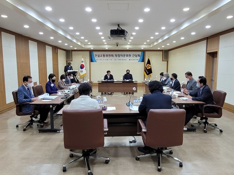 한편, 대구시의회 건설교통위원회 소관 의정자문위원회는 10개 분야 전문가 16명(의정 1, 도시계획 2, 토목 4, 건축 3, 교통 1, 공항 1, 철도 1, 상수도 1, 법률 1, 세무·회계 1)으로 구성되어 주요 현안사항 해결방안 모색 등 의정활동에 필요한 의견개진 및 정책자문을 해오고 있다.