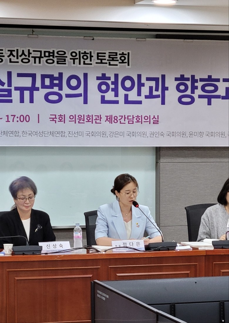 정책토론회에는 정다은 위원장이 좌장을 맡고, 신상숙 연구원(서울대 여성 연구소), 장임다혜 연구원(한국형사·법무정책연구원), 윤경회 팀장(5·18진상규명조사위원회)이 발제를 맡았다.