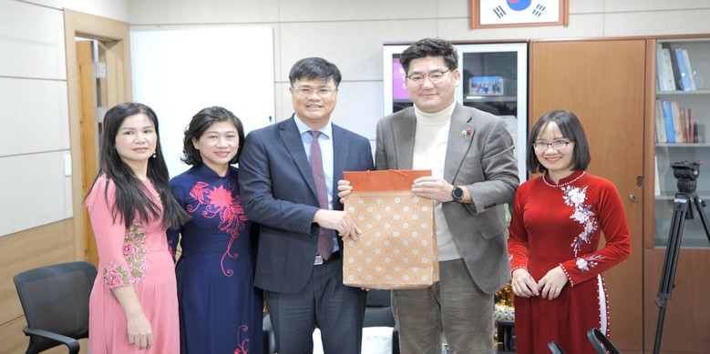 왼쪽부터 베트남 응에안성 응우옌 티 흐엉(Nguyen Thi Huong) 인민위원회 사회부 부장, 응우옌 티 타잉 흐엉(Nguyen Thi Thanh Huong) 문화체육부 부국장, 팜반투안(Pham Van Toan) 외무부 부국장, 심철의 부의장, 당 티 타잉 후옌(Dang Thi Thanh Huyen) 외무국 실무자로 상호 기념품을 전달했다.