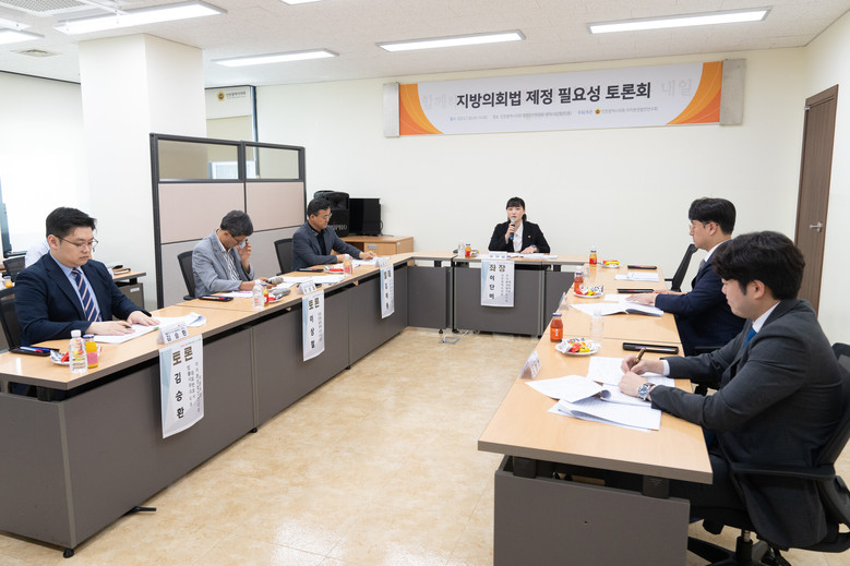 ‘자치분권발전연구회’는 26일 시의회 행정안전위원회 세미나실에서 연구회 구성원인 이단비·김재동·김용희 의원, 연구회 자문위원인 법무법인 청향 조승현 대표변호사, 법률사무소 GB 김승환 대표변호사, 법무법인 에이파트 파트너변호사이자 주식회사 알앤원 이사인 도형호 변호사, 시의회 이상철 입법정책담당관 및 권호창 총무담당관 등이 참석한 가운데 ‘지방의회법 제정의 필요성’을 주제로 토론회를 개최했다.