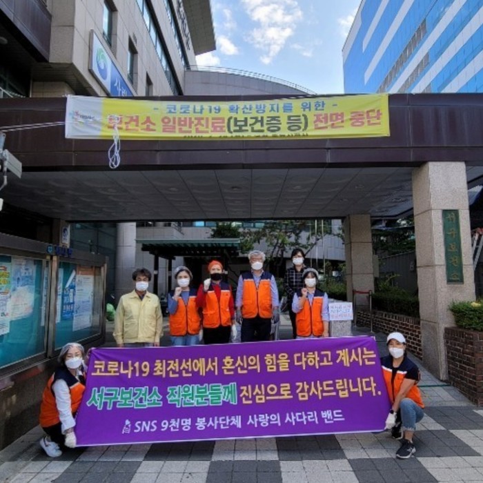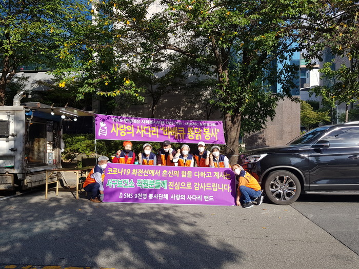 서구보건소 김은희 감영병관리팀장은 “오늘 사랑의 사다리 밴드 봉사단체에서 맛있는 통닭을 지원해 주어서 큰힘과 위안이 된다.”면서 “코로나19가 하루속히 종식될 수 있도록 서구보건소는 최선의 노력을 다하겠다.”고 말했다.