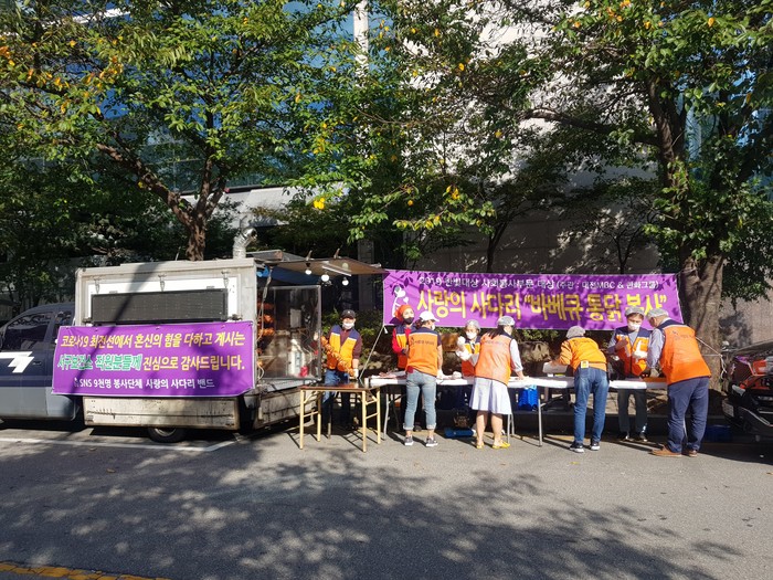 바비큐 통닭 봉사단 신상일 단장은 “코로나19로 휴일도 없이 밤낮으로 고생하고 계시는 서구보건소 직원분들의 노고에 감사의 마음으로 현장에서 직접 구운 통닭을 준비했다.”고 말했다.