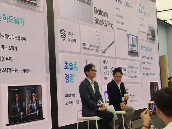 삼성전자는 12일 ‘삼성 강남’에서 이 같은 기능들을 탑재한 신형 인공지능(AI) PC ‘갤럭시 북5 프로(Pro)’를 최초로 공개했다.