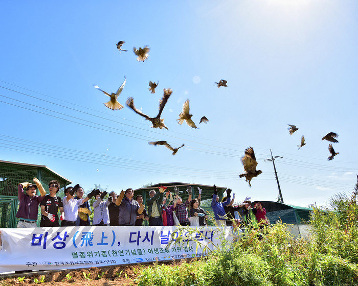 [김포시=세계타임즈 이영진 기자] 김포시와 사단법인 한국조류보호협회 김포시지회는 20일 15명의 공무원, 이장, 주민 등이 참석한 가운데 수리부엉이 등 부상치료가 끝난 야생조류를 자연의 품으로 되돌려 보냈다.