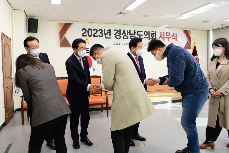 [경남 세계타임즈=최성룡 기자] 경상남도의회(의장 김진부)는 2일 2023년 계묘년을 맞아 3·15민주묘지, 충혼탑 신년 참배에 이어 시무식을 개최하였다.