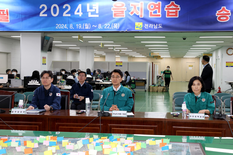[전남 세계타임즈=우덕현 기자] 김태균 전남도의회 의장은 20일 오후 2시 ‘2024 을지연습 종합상황실’을 방문해 근무자들을 격려하고 위문품을 전달했다.