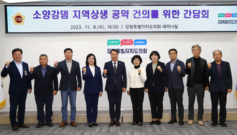 [강원도 세계타임즈=김민석 기자] 소양강댐 피해지역 공동대책위원회(박기영 위원장,엄윤순 부위원장)는 11월 8일 수요일 오후4시 강원특별자치도의회 세미나실에서「소양강댐 지역상생 공약 건의를 위한 간담회」를 개최한다고 알려왔다.