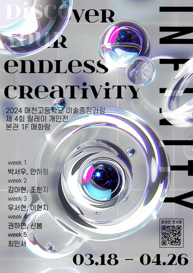 온라인 전시와 포스터를 제작한 3학년 조현지 학생은 “인공지능(AI)과 3D기술을 활용하여 창의적 아이디어를 현실화하는 작업을 하면서 기술의 결합이 예술적 표현의 경계를 확장시킨다는 것을 배웠고, 보다 넓고 새로운 시각을 갖게 되었다.”고 소감을 밝혔다.