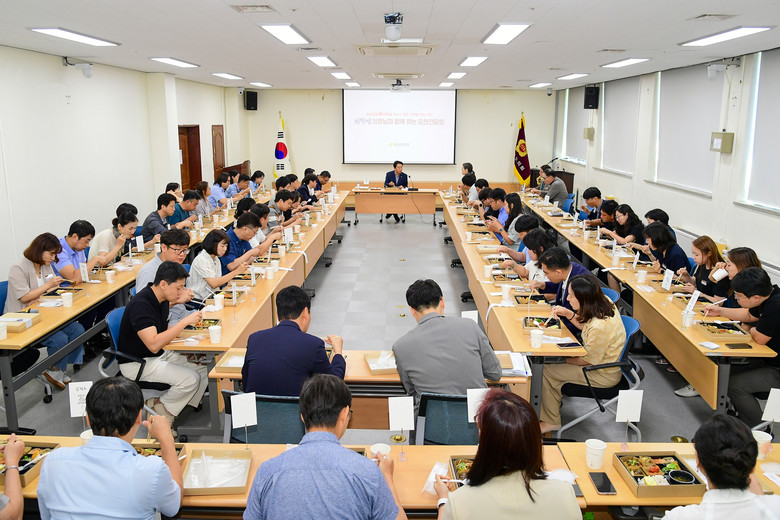 이번 의회사무처 6급 직원들과의 도시락 간담회는 지난달 26일 의회사무처 7급 이하 직원들과 “브라운 백 미팅”을 개최한 것과 같은 취지로, 직원들과의 편안한 소통의 자리를 마련하여 직원들이 행복하게 일할 수 있는 분위기를 조성하고자 하는 최 의장의 뜻에 따라 개최되었다.