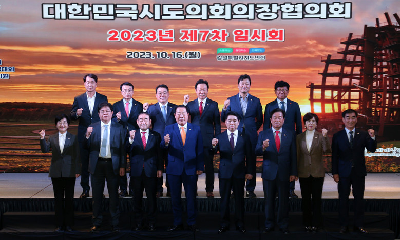김진부 의장은 10월 16일 강원도 강릉시(세인트존스호텔)에서 열린 2023년도 대한민국시·도의회의장협의회 제7차 임시회에 참석해「지방공기업 경영평가권의 지방이양 촉구 건의문」을 제출했다.